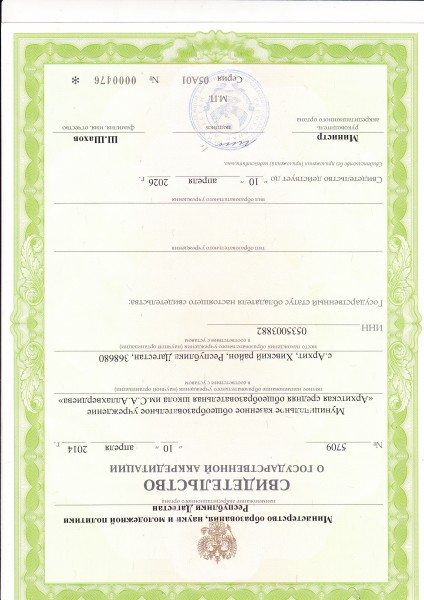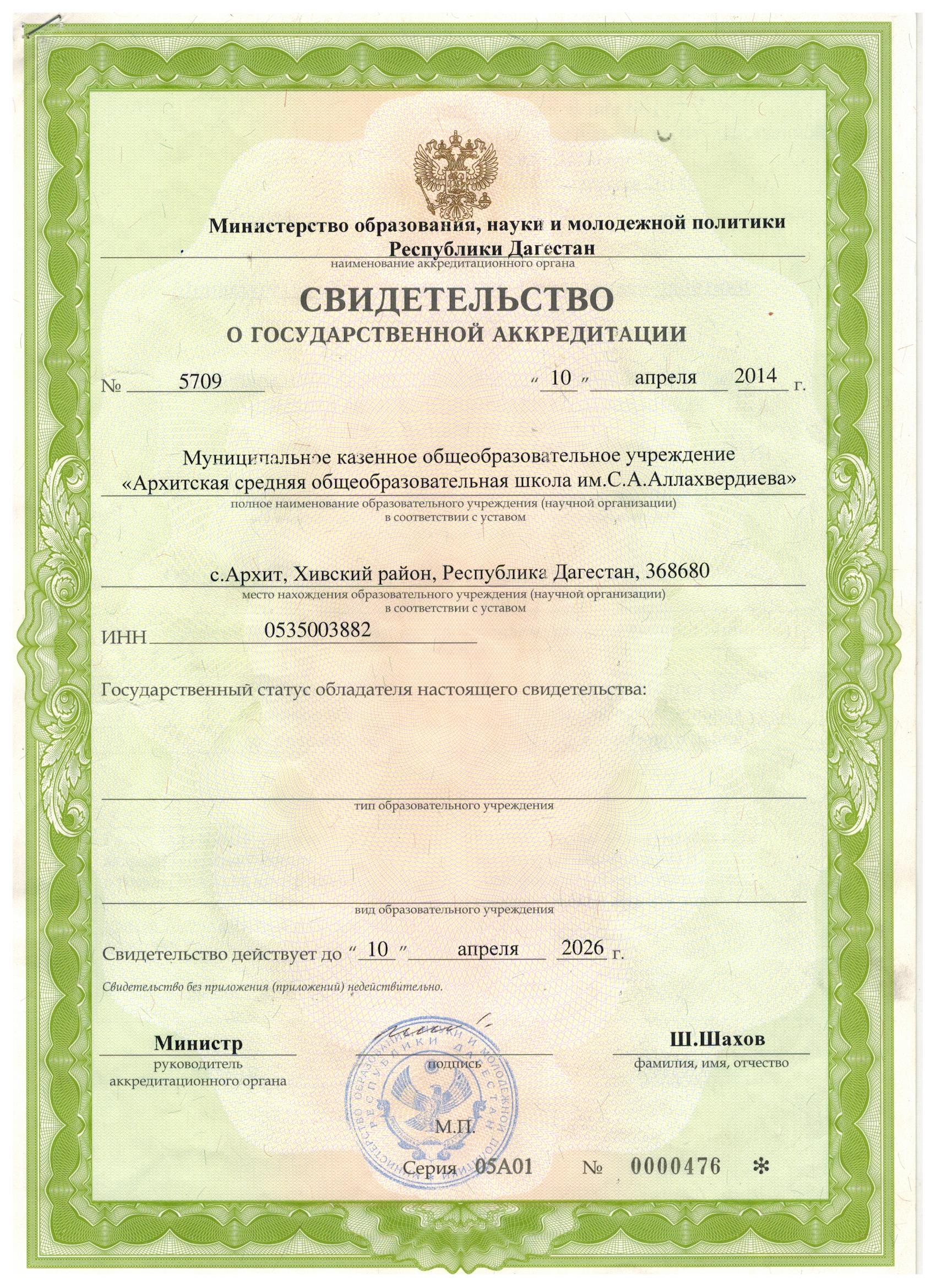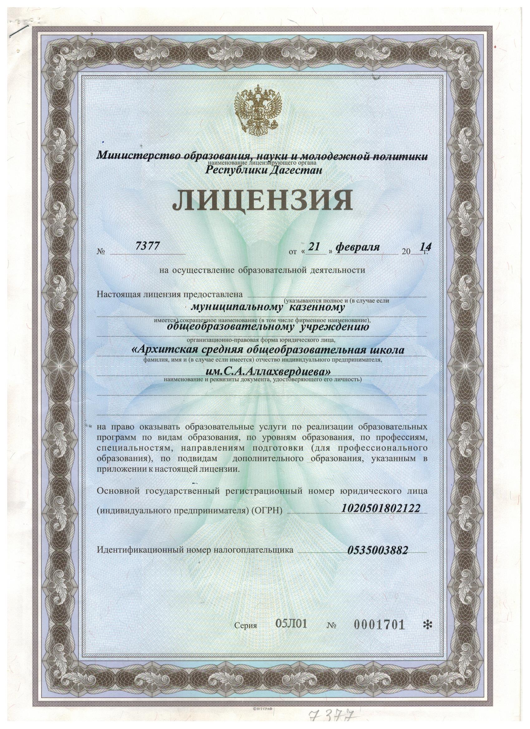 | Полное наименование образовательной организации* | Муниципальное казенное общеобразовательное учреждение "Архитская средняя (полная) общеобразовательная школа им.С.А.Аллахвердиева" |