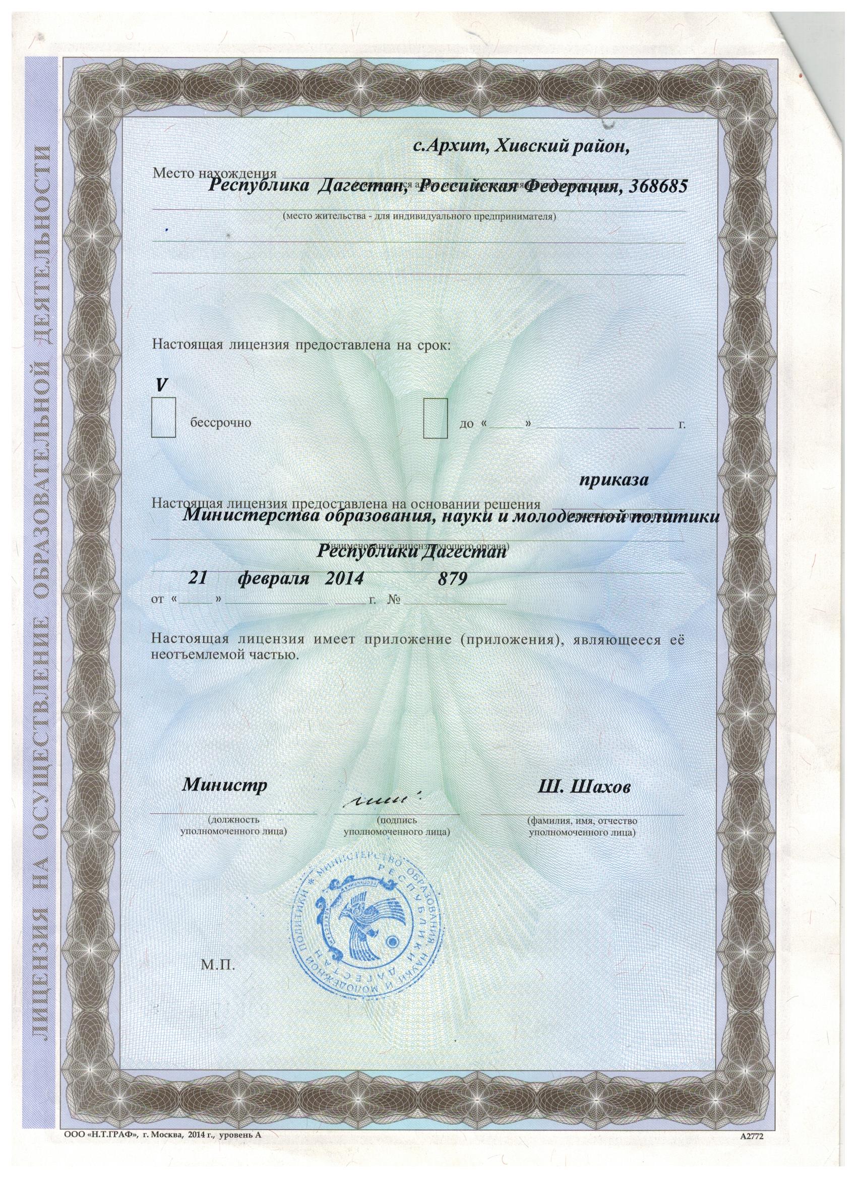 | Адрес местонахождения образовательной организации* | 368684 РЕСПУБЛИКА ДАГЕСТАН РАЙОН ХИВСКИЙ СЕЛО Архит |